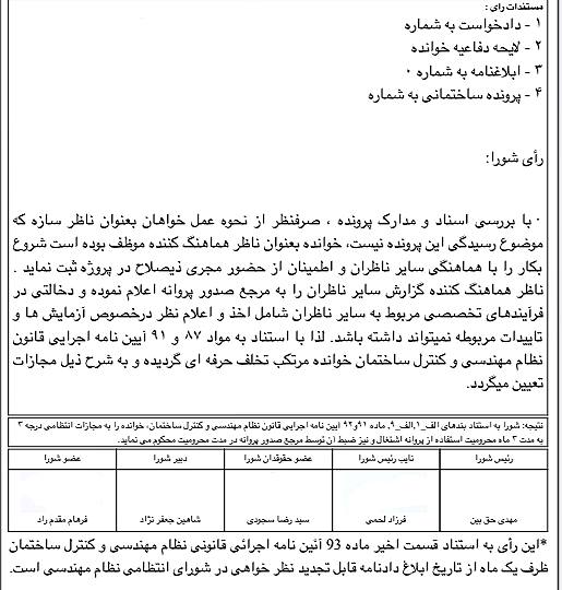 در تصویر زیر نمونه ای از رای محکومیت ناظر در شورای انتظامی را مشاهده می نمایید .