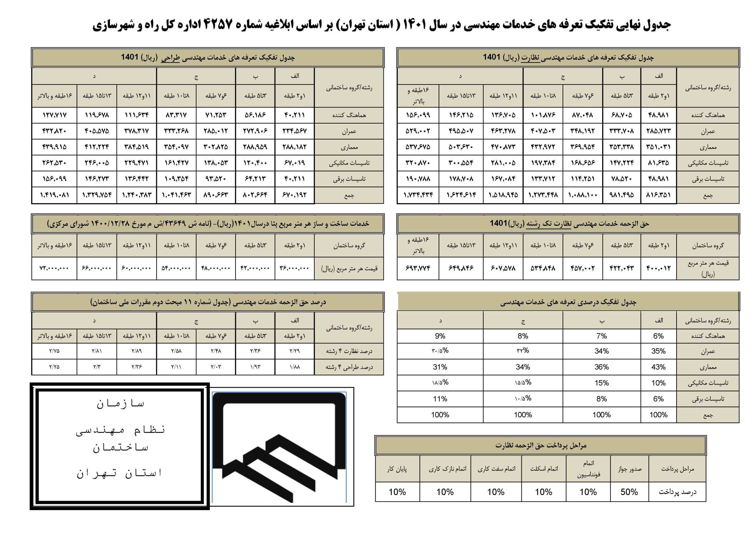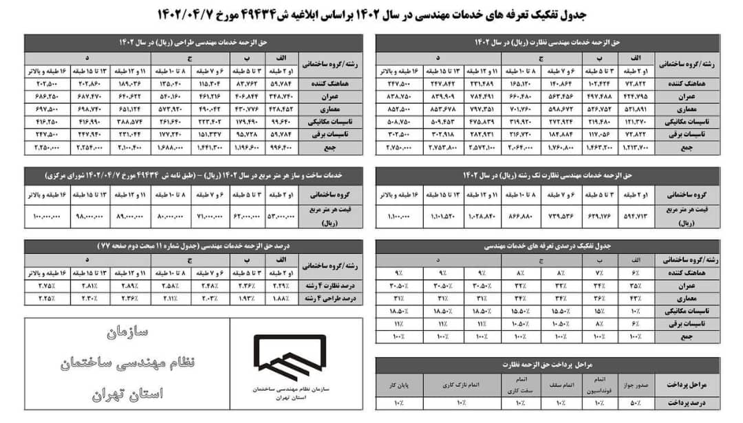 جدول محاسبه حق الزحمه خدمات مهندسی 1402